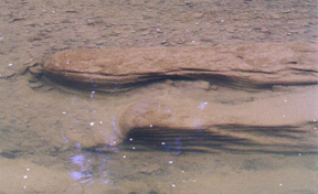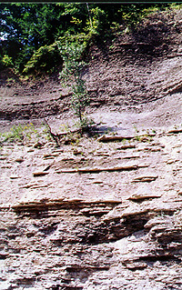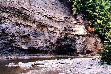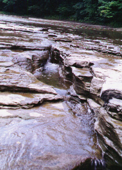 The water carves and shapes the shale that once was the bottom of an ancient sea.