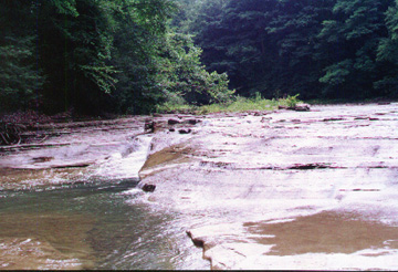 If you continue on upstream from the falls you find 2 very beautiful side-waterfalls. The 2nd is the very best of the best - the rocks intricately carved into gorgeous shapes by the water. Our time however was VERY short, and the younger girls were getting very tired. Erin and I started walking upstream, but we had only 15 minutes to walk in one direction and we had to start our return to the falls area so we could all get out of Zoar by darkfall. We hurried, but alas only got just past this, the 1st side falls on the left. It was time to start back. We PROMISED each other that NEXT year we WILL make it to the 2nd falls on the left. (want to join us Deb?)