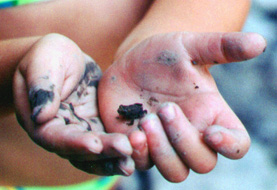 Zoar grows the tiniest toads I've ever seen! Here's Amy (age 4 - small hands) with a fine example of one.