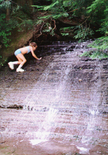 Here's Sara scaling the cascade waterfall at one of the first feeder streams. She wandered back there in the woods following it for awhile (looking for faeries and elves i suspect) before she slid back down to us.