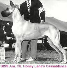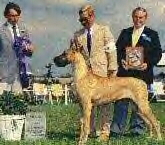 Breed:Great Dane Sex:Female DOB:Sep 28,1998 AKC#:WP876147/03 Color:Fawn w/black mask Breeder:Sandy Flynn & Janey Kohl Owner:GG Strickland & Sandy Flynn |