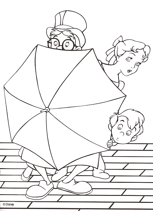| Wendy, John and Michael hiding behind John's umbrella. |