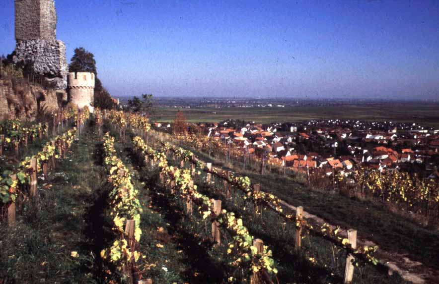 About 30 kilometers west of the Rhine River, Ruppertsberg is situated along the Weinstrasse, an 80-kilometer long highway where the main agricultural product is wine. (2)