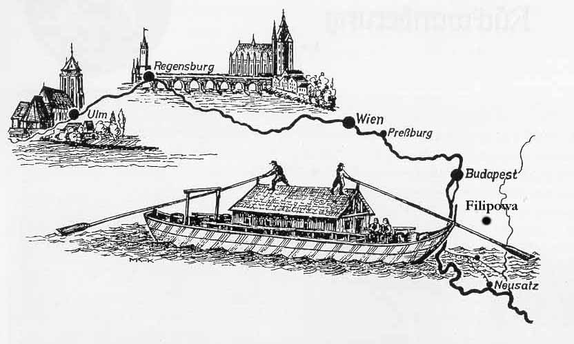 of departure. From there, settlers were boarded on boats called "Ulmer Schachtel"