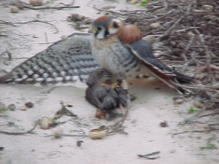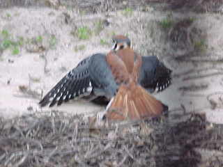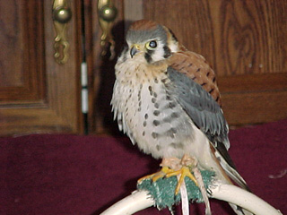 As of yesterday (17 january 2003) my sporty little tiercel Skeeter has taken over 30 starlings and house sparrows. This kind of falconry referred to as micro falconry, but is NOT micro in its capacity to satisfy the hunter in me! I have found that the epic struggle between predator and prey is alive and well in small hawk falconry. I have found the kestrel to be a bird very worthy of one's time.