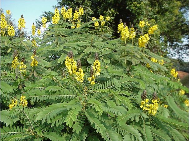 CONTROL: DESCRIPTION: Bright yellow flowers in clusters with dark brown bud and smell distinctly like peanut butter; flattened brown pods leaves divided into leaflets; many-stemmed shrub or small tree. Flowering time: Flowers most of the year but peaks in autumn. ORIGIN: Originates from tropical Africa and has been widely cultivated as an ornamental. WHERE FOUND/PROBLEMS CAUSED: Throughout the summer rainfall regions, it is commonly found in disturbed areas such as roadsides and waste areas, but prefers sheltered, moist situations. Grows rapidly and is difficult to control. Invades grassland, coastal scrub, woodland, roadsides, riverbanks and wasteland. DID YOU KNOW: Peanut-butter Cassia was once commonly grown as a garden plant but has escaped and like many other exotic ornamentals has become a serious and invasive weed.