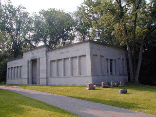 The original plans called for a building measuring 72 by 60 feet, housing 400 crypts. During construction plans were revised and the finished structure measured 56 by 82 feet, having 290 crypts. The exterior was constructed of Bedford Stone, with Vermont marble used for the interior. The seven cathedral-styled windows were to provide interior lighting and contained symbols of the seven major world religions.