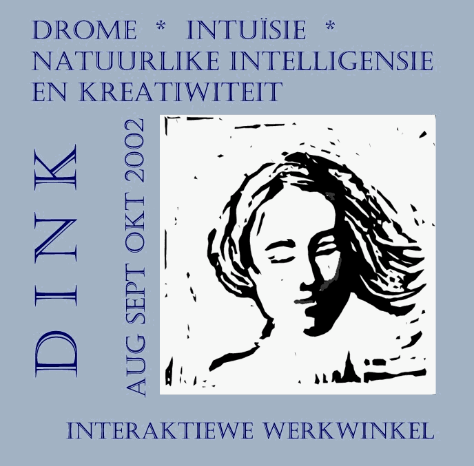 interaktiewe werkwinkel oor drome, intuïsie, natuurlike intelligensie en kreatiwiteit, wat sal plaasvind in Aug, Sept en Okt 2002.My persoonlike detail is soos hieronder ingevul in die tabel, en my besluit oor finale inskrywing is soos aangedui in die vorm. Ek verstaan dat my deelname aan