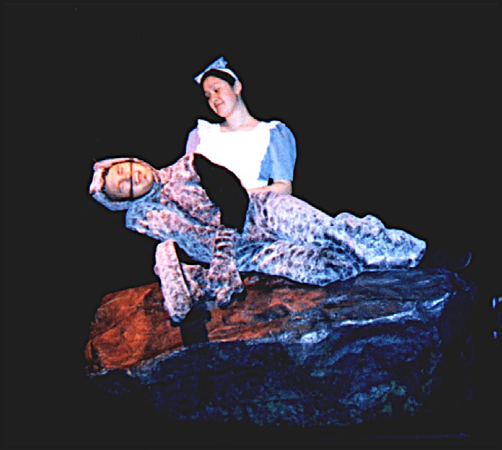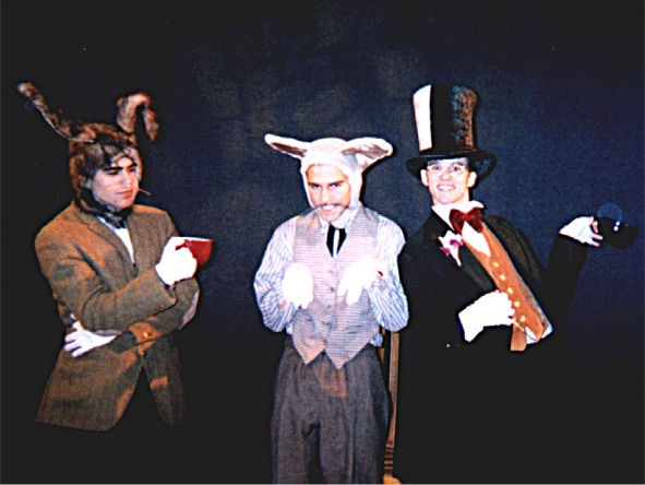 These costumes were created in a week and a half. I had not yet done full body costumes yet but it was crash test time. HereI was was making two. One for the Cheshire Cat and the other for the Caterpilar. I also had to make the March Hare and the Dor Mouse. There was a Madd Hatters Hat that I had also made but I rejected it at the last minute when we found an oversized Uncle Sam hat and I covered that in green velour and we were set. |