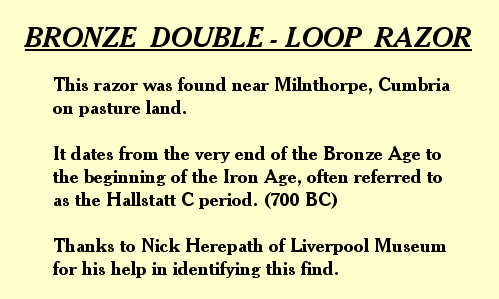 When Nick replied I was amazed, he said I had found a bronze Double Loop Razor dating from the very end of the Bronze-Age/beginning of the Iron-Age (700BC), and quite rare.
