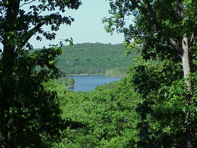 This is the view from the deck looking out to the lake. Nice place to sip morning coffee. Oh yes, those are tree tops in the lower part of the picture, we have no fear of being flooded here. *s*