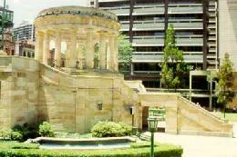 We parked in an underground garage (the car got scraped, but we are not dwelling on that) and walked up a ramp, then took a lift (elevator) to the surface. Across the street from the garage was Memorial Park - filled with statues honoring soldiers fallen in all the Wars Australians have fought in (including Vietnam - I guess I never realized that as our allies, they were sucked into that exercise in futility as well). Sarah showed me a bridge her father had helped design (his job being "to make sure things stay up" - he's an Engineer). We ran around the park taking photos of the statue and of a baobob tree - like in Le Petit Prince - I thought they were made up! We also ran up a flight of steps to the Eternal Flame, which is housed in a structure that looks like marble and is pillared. The flame honors soldiers killed in war and it never burns out.