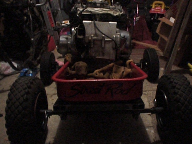 | During a bench racing session with the guys one night a conservation happens. "Hey I know what would make that wagon go fast". "A motorcycle motor". General nodding of heads from all the car nuts. Then another buddy pops up "hey I gota dead motorcycle in the weeds, ya want it?" "Well what is it" is my reply. "Well its only a Honda CB650". Hey its free why not. It ran two years ago just needs carbs cleaned out. Sure is my reply. My brothers reaction. "You've had a motorcyle for 7 years running but none of them have run! The carbs were toast. I will post a picture later on. They were so bad that the gas had congealed into brown cakes. It had actually eaten away some of the aluminum on the main jets. I have a set of carbs on order that I found on E-Bay. Am I serious? Are you nuts? You will kill yourselve is jsut a few of the reactions that I get. We have a burnout contest at my church every August and it is my dream to pull up to the line with a wagon that will burn off the tires. Maybe this summer maybe not. A guy can dream. |