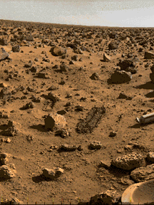 The uniquely red global surface of Mars is marked by many interesting features - some like those on the Earth and others strangely different. The reddish color is caused by rust (iron oxide) in the soil.