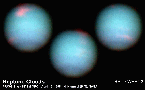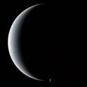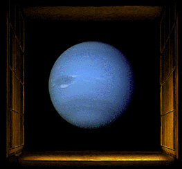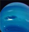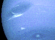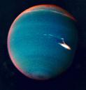 Neptune, which is usually the eighth planet from the Sun, is a very cold place. Occasionally, the ninth planet Pluto crosses Neptune's orbit and becomes the "eigth planet". Its bluish color comes from its atmosphere of methane gas. The planet has eight moons and a very narrow, faint ring system.