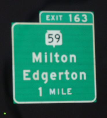 Wisconsin State Route 59 runs east-west across Northern Rock County. This runs from near Whitewater to near Albany. WI St Rt 59 passes through the following towns in Rock County. Milton Newville Edgerton Cooksville Union Evansville WI St Rt 59 is multi-plexed in Rock County. U.S. Rt. 14, from Union to Evansville. Wisconsin State Route 213, near Evansville. Wisconsin State Route 104, at the Rock/Green County Line. WI St Rt 59 intersects the following highways in Rock County. Wisconsin State Route 26, at Milton. Interstate 39, near Newville. Interstate 90, near Newville. U.S. Rt. 51, at Edgerton. Wisconsin State Route 138, at Cooksville. U.S. Rt. 14, at Union. U.S. Rt. 14, at Union. Wisconsin State Route 213, at Evansville. Wisconsin State Route 213, near Evansville. Wisconsin State Route 104, near Albany. Wisconsin State Route 104, near Albany.