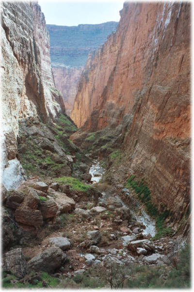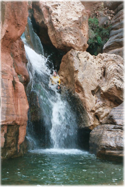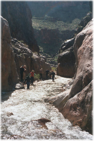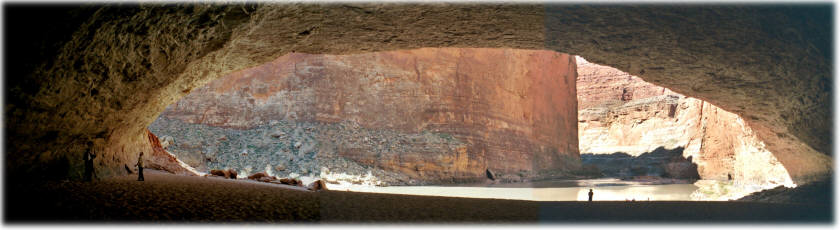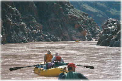 Whitewater Rafting - one of my passions The Grand Canyon is a magical place, especially when experienced from the river. I've rafted the Colorado River through the Grand Canyon 4 times, personally rowing the entire 286 miles. This is a true wilderness experience with no roads, telephones or services of any kind. Everything is hauled in on the rafts and everything is hauled out as well ... and I mean everything. The suitable campsites are typically found at the side canyons because the side canyons provide the debris for the rapids. This means an unlimited amount of hiking at each campsite to a huge variety of magical places: fren grotto, vasey's paradise, the Anasazi granaries, elves chasm, thunder river, Havasu falls. It's a wonderful time to contemplate life and decompress. My last trip started on February 28 and lasted 28 days. March turned out to be a wonderful time to experience the canyon as no motorized boats are allowed at that time and the weather was mostly wonderful. Such long trips are uncommon, the typical self-guided private trip is less than 3 weeks. Permits are hard to get and the wait is in excess of 14 years. Redwall Cavern A day on the river |