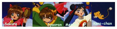 Sorry, not all the characters are up yet. Eventually they will be. Hmm. LEARN: CLAMP's characters are never simple. On outer appearance, they may be, but inside they have so many unexpected twists and curves. Strange, but in CCS, I actually LIKE every singe character, including Meirin, Eriol, and even Nakuru. Li Syaoran's (Li-kun) my favorite, though. (Who could resist his glares, blushes, his eyebrows, hair... smile!!!) I think I completely fell in love with CCS when I first saw him. But, as I said, I like all characters. At first, I didn't like Li Meirin (Syaoran's cousin and fiancee) because of course, I was a desperate S+S fan. But, I saw her good points, and she added a great comic part in the anime. Yamazaki is funny too... Hey, he does have eyes. Check his info out...Oh yeah, and Yue is totally cool. And can you ever get a better brother than Touya... Ha ha. Nakuru is so funny. Gosh, I think Tomoyo and Eriol match with each other. I might get up a Tomoyo and Eriol mini shrine up.