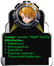 Tai og Matt er mine favoritter i serien.Deres våpenskjol er: MOT (Tai) & VENNSKAP (Matt)