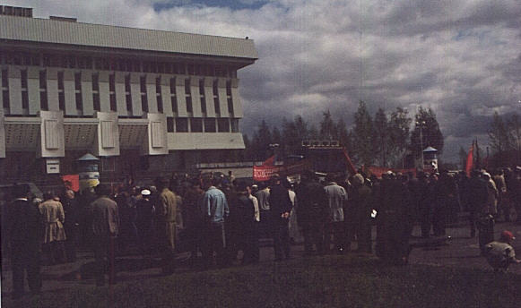 Nina knew there would be a communist rally at another place in town, so she rushed off, with Lilia and I in tow. When we arrived, there was a small crowd of people with red flags and assorted banners, outnumbered by curious onlookers and police.