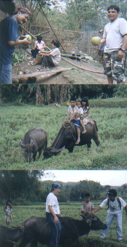 Onder: Ik op dezelfde karabao! En ik viel er niet af, gelukkig. Ook al stonden de anderen nogal zenuwachtig te kijken...