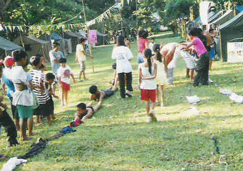 1e foto, de groepsfoto van het zomerkamp in Naga. Voor degenen die goed kijken: ik sta er ook op (linksachteraan). Maar verder let goed op de gewoonte hier om OVERAL een spandoek van te maken. (vinden ze handig voor op foto's zodat je je herinnert wanneer de foto genomen is ofzo.. ach ja)