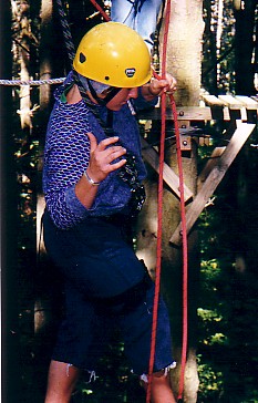 | Tracey on the Monkey Ropes; she even did this with her eyes closed!! |
