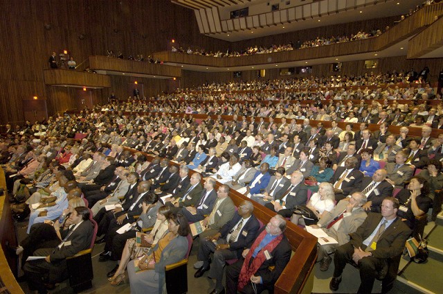 Good evening. Ladies and gentlemen, as we begin the 21st century, we find ourselves at a truly historic turning point. We are at a point of decision. Can everlasting world peace take root, or are we doomed to repeat the 20th century's dark and oppressive history of war and conflict? The 20th century was a period of ceaseless struggle, including wars for colonial dominion, the First and Second World Wars, the Korean War, and the Cold War. Living through this era, I dedicated my life entirely to the accomplishment of God's ideal of peace. I have always prayed sincerely that the United Nations, founded after the Second World War, would be an institution of peace, and that it would uphold God's will for the realization of eternal world peace. The United Nations has made important contributions for peace. Nevertheless, at its 60th anniversary there is a broad consensus, both inside and outside the organization, that the U.N. has yet to discover the way to fulfill its founding purposes. The number of member states approaches 200, but the offices of these states do little more than represent and even insist on their own interests. They seem inherently unable to resolve conflicts and achieve peace.