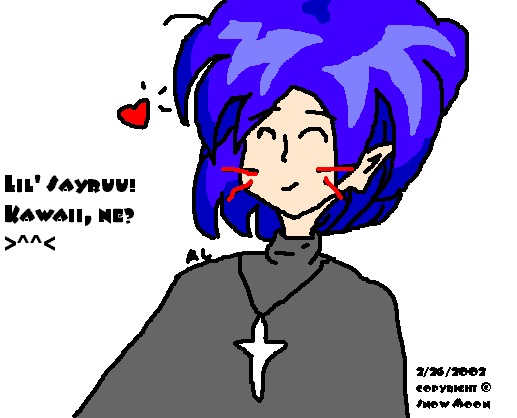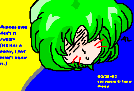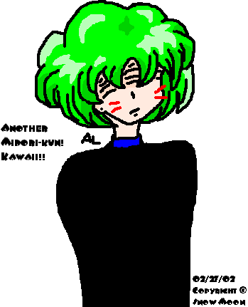 Midori-- Oekaki version I drew this on an Oekaki. (^^) The date for it is February 29, 2002. It took a long time... I've been doing this for three days, and already my old pictures look really bad... Which is a good sign that I'm improving, right?