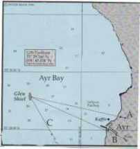 The wreck today :The Glen Shiel now lies 2.75 miles WNW of Ayr harbour in 25 metres of water, her position charted as 55°29.16'N , 004°43.18'W. The Glen Shiel lies on her port side with her bow facing south and is completely intact except for her mast and propeller, which were removed by commercial divers in 1977. The least depth over the Glen Shiel is 18 metres, so due to the shallow aspect of the vessel, the visibility is usually quite good which makes this a good dive . According to some sources, there are still goodies to be had on this wreck.