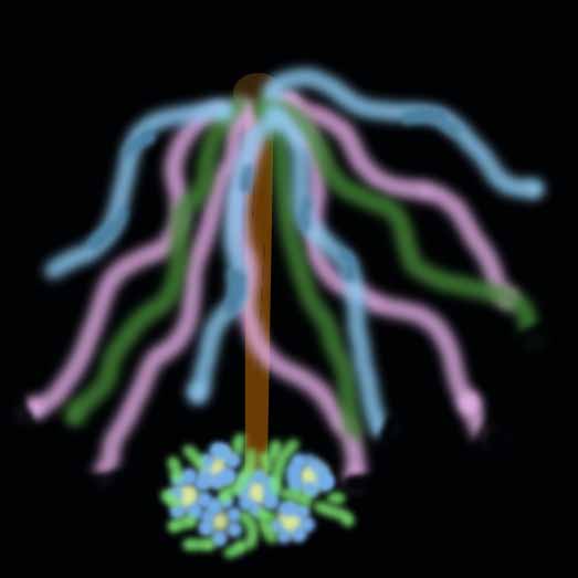 | Beltane marks the wedding of the God and the Goddess. It is a celebration of the Earth's return to fertility. Beltane celebrations may include adorning a living tree with flowers and tokens, ribbons and bows. The traditional maypole dance is performed at this time. Also a time when animals were ritually driven between two bonfires to protect them from disease. |