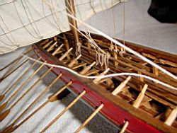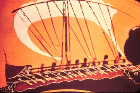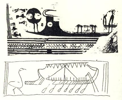 Τριαντακόντορος "Πληροφορίες για τη κατασκευή" / 30oars Informations (only in Greek) Το μοντέλο που παρουσιάζουμε είναι ένα τριαντάκοπο πολεμικό του 10ου με 8ου π.χ. αιώνα. Η χρονολόγηση βγήκε από τις πηγές μας που είναι της εποχής αυτής. Μετά από πολλές μελέτες αρχαίων παραστάσεων κυρίως αγγείων και διάφορες αναφορές της εποχής εκείνης, αρχίσαμε να σχεδιάζουμε σκεπτόμενοι λειτουργικά.