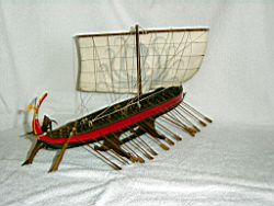Το μοντέλο που που παρουσιάζεται αποτελεί είναι ένα τριαντάκοπο πολεμικό του 10ου με 8ου π.χ. αιώνα. |