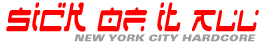 | One of my most brutal nose bleeding concerts ever was definetly New York hardcore Masters Sick of it all... They played the fourth of November 1997 in "De Melkweg" in Amsterdam, Holland. While trying to survive the brutal mosh-pit I was able to take some pictures. After that I bashed some heads and stage-dived along with my homeboys!! | ||||||||||||||||||||||||||