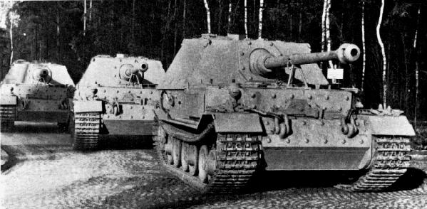 | In 1940 Germany began designing a new heavy tank with anti shell armor and improved weaponary. The design was completed in 1942 , because og changes in the design specifications. the Porsche and Henschel both participated in the design and production. Hitler liked Porsche's tank so much that he ordered the production without the final decision of the comission. Henschel's design was ultimately chosen by the comission, forcing porsche to make a decision about the 90 units he had already managed to manufacture. Porsche mounthed an 88mm Pak on the upper hull without using a turret. The tank was protected by 200mm of frontal armor. The tank had the thickest armor at that time and could not be pierced by any anti tank gun. Its powerful gun could easily destry ant soviet tank. Despite these advantages , lack of off-road ability and underpower engine , regolated it to more of a defensive duty tank, similar in many respects to Self Propelled artillary. On May 8th 1943 all ferdinand left the factory ( Nibelingenwerke , St Valentine) without the protective shields around the mounted gun. On May 13th , Krupp shipped some to the Ferdinands already stationed in the east. Indequate number of shields were produced and many units didn't recieve them. Ferdinands were assigned to Schwere Heeres Panzerjeager abteilungen 653 and 654. Both Battalions were formed in April , as preparations for operation Zitadelle ( At Kursk ) In october after the baettle of kursk , 50 remaining Ferdinands were send back to the factory for badly needed repairs and Pre-planned modifications. most of them were covered with zimmerite , anti magnetic paste. After the modifications all the Ferdinand were officially named Elefants. 48 of them were reqrouped to SHPjA653 and were send to Italy to stop the Allied advance. 13-14 units saw service on the eastern fron as late as early 1945. In mid 1945 all remaining Ferdinands (4 units ) saw service with Kamfgruppe Ritter in Southeast of Berlin.Elefants were very effective when operating at long range. One elefant shot a T-34 at range of 4.5km. Despite the fact very few elefants were manufactured and because of this they didn't manage to play a major role in the war. High cost of manufacture and maintenace ensured that a large number of them would never be produced and almost all of them were destroyed during the war except 2 of them , one was captured in Anzio and the other one at Kursk. |