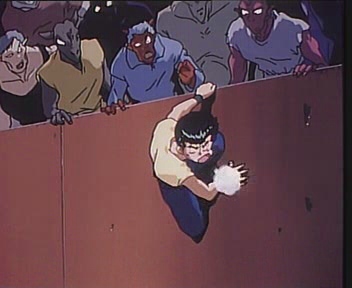 Yuusuke letting out a sigh of relief during his battle with Jin (?).