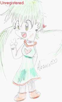 Appearence: Size of a pear, long, pig tailed green hair with black streaks, 20 year old build