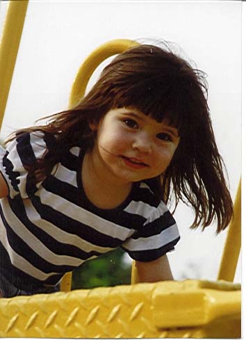 | Here she is, our little ray of sunshine! Melissa came along a few years after Michelle, and our lives haven't been the same since. She is the most optimistic person I know, little or otherwise! Her boundless energy and happy disposition always amazes me; if you are feeling down and depressed, just a few minutes with Melissa would ease your pain away~she is proof that there really are angels on earth...even if their halos aren't always on straight! |