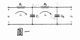 3.如圖一,試求(a)Vo(s)/Vi(s)之轉移函數(20%) (b)動態方程式(設xl=Vcl,x2=Vc2)(20%)