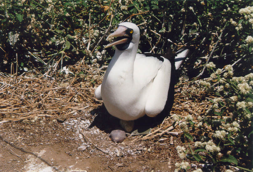 Masked boobie med ägg och nykläckt unge.