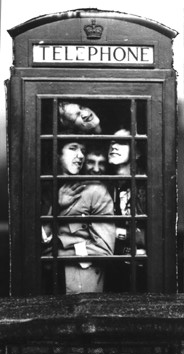 the guys crammed into a phone booth