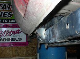 Since the cab goes further back than normal, I had to gently beat the hell out of the floorboard in order for the cab to sit down at the correct level. It doesnt really take much hammering. I may remove this croddmember in the future and build one further back. |