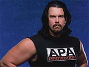 | Bradshaw isn't a leader, he's a follower. As a member of the Acolytes, part of the Undertaker's Ministry of Darkness, he and Faarooq were the Phenom's enforcers. When all the darkness and mysticism was over, the pair decided to put their brand of punishment on the open market. Working for WWF superstars like Edge and Trish Stratus may not be easy, but Bradshaw is more than happy to give anyone a Clothesline from Hell if the price is right. |
