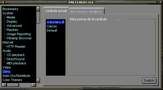 2.- Copiar l'archivu Asturianu.zip al directoriu de Skins de Winamp que será