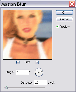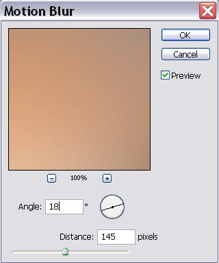 Step3: Go to Filter>Blur>Motion Blur. Set the settings to the ones you see here also.