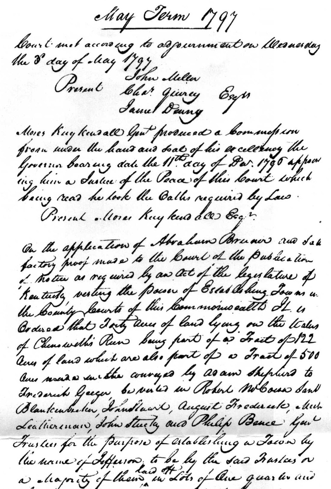 | Robert McKown is named a Trustee of Jeffersontown in this 1797 court document. | ||||||||||||||||||||||||||||||||