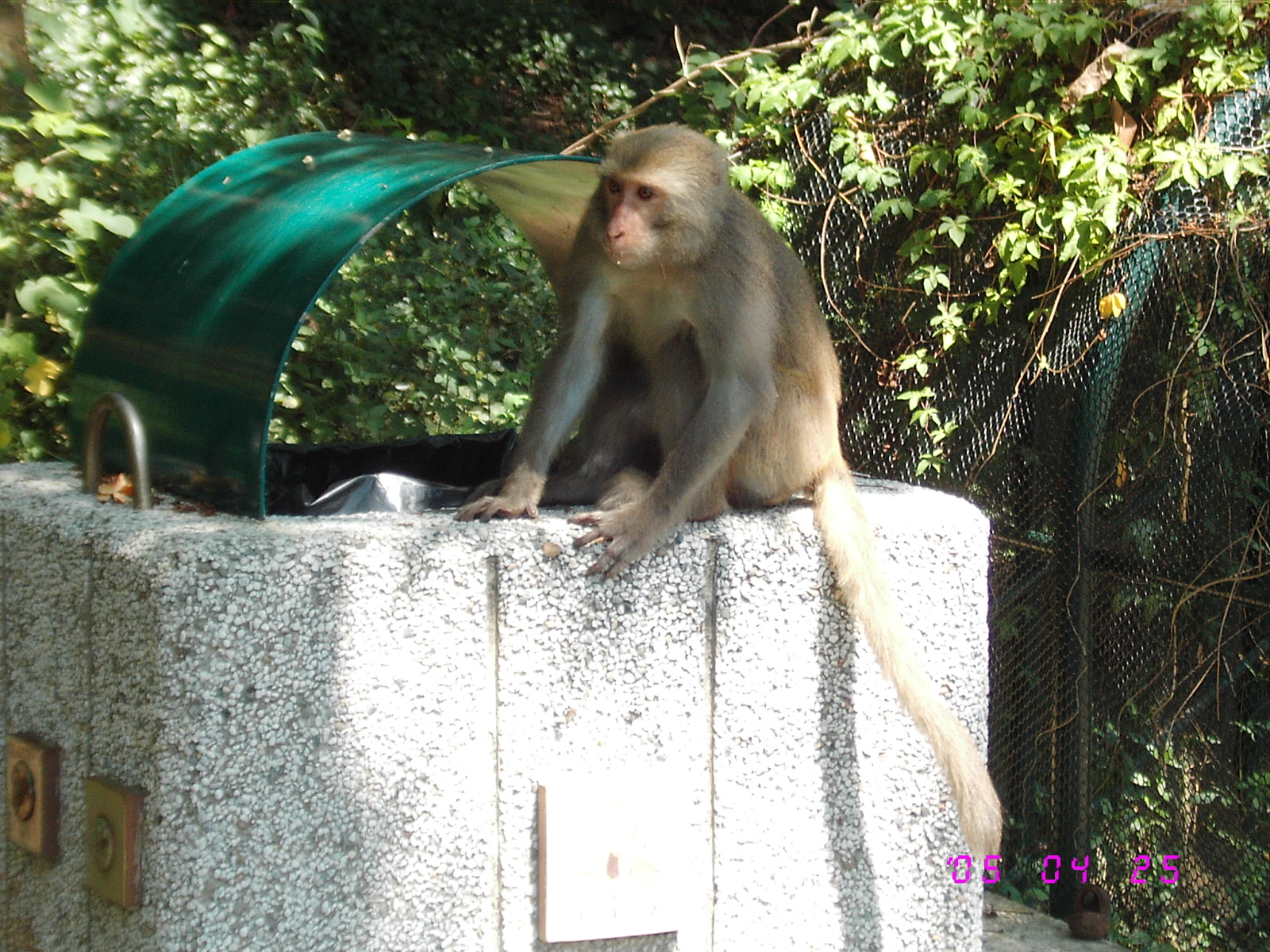 說明:這是生活在壽山山上的野生獼猴進入市立動物園拾荒的情形