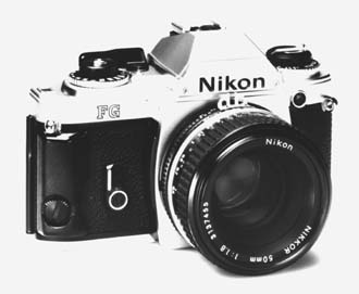 New Nikon FG 35mm single-lens-reflex camera includes revolutionary design features including programmed automation, aperture preferred automation, quartz timed manual speeds and through-the-lens flash metering. The new Nikon FG is ultra compact, lightweight and has an audible exposure waring system. |