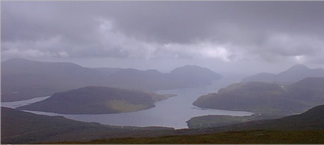 Please click on a picture to see a full sized version. The final shot was taken a few days later on Liuthaid. Looking south along Loch Seaforth the distant hills are Beinn Mhor, Cipeagil Bheag and Cipeagil Mhor, Caiteshal and, on the west of the loch, Toddun. Closer is Seaforth Island whose 217m summit is another Marilyn [picture13].
