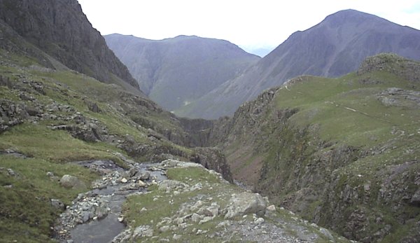 Piers Gill from the corridor route with Kirk Fell and Great Gable behind